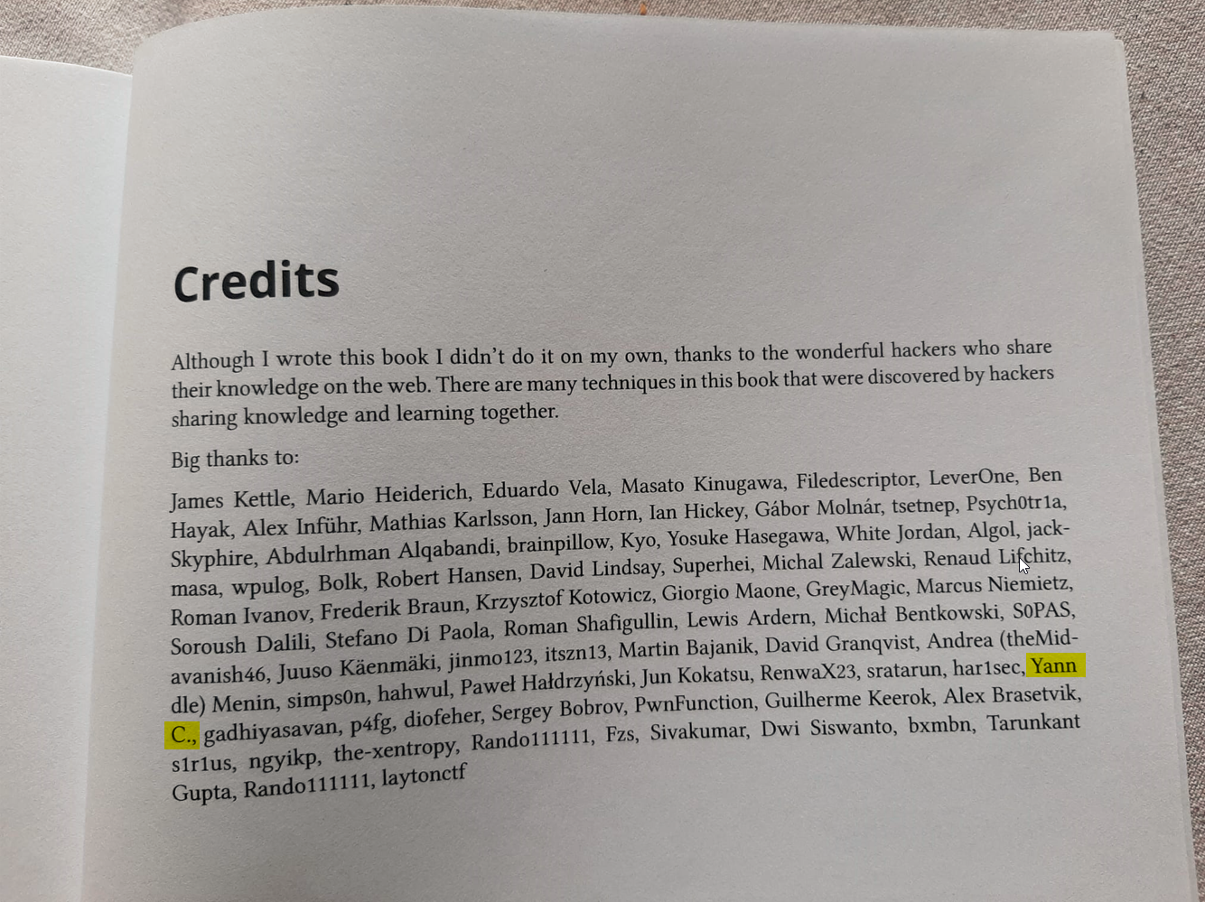 Gareth HEYES, chercheur chez PortSwigger et l’un des experts mondial incontesté de référence sur le Hacking via JavaScript (XSS, bypass-WAF, payloads, browsers SOP evasion), me mentionne dans les crédits de son ouvrage ainsi que sur l’incontournable XSS Cheat Sheet en ligne. [1][2]